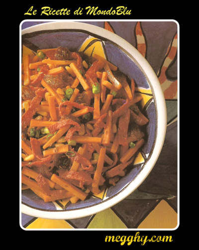 Tempo e Difficoltà: 30 minuti - facile Ingredienti (per 4 - 6 persone): 2 cucchiai di olio d'oliva 10 fettine di chorizo o salame piccante 15g di burro 6 carote medie tagliate a listarelle .. LEGGI ALTROInserito il 10 Aprile 2009 alle 19:040