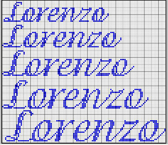 Schema a punto croce del nome Lorenzo in font Adorable