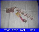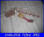 Il ricamo lo realizzerò su un aida 55 sfumata (non so come si chiami nella realtà), ma se a qualcuna può interessare mi informo!!! Il colore che utilizzerò per il ricamo è un filo tinto a mano da Romy's creations e si chiama Desert rose, il pizzo è un valencienne sfumato guardacaso sui colori del filo, quando vado ad abilmente se ne trovo ancora ne prendo un'altro pò perchè mi piace davvero molto! Valuterò alla fine se nel fiocco ci inserirò un charms o qualcosa di simile!