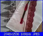 la tela sempre bianca Aida 55 con DMC 777 perfettamente stesso colore del pizzo