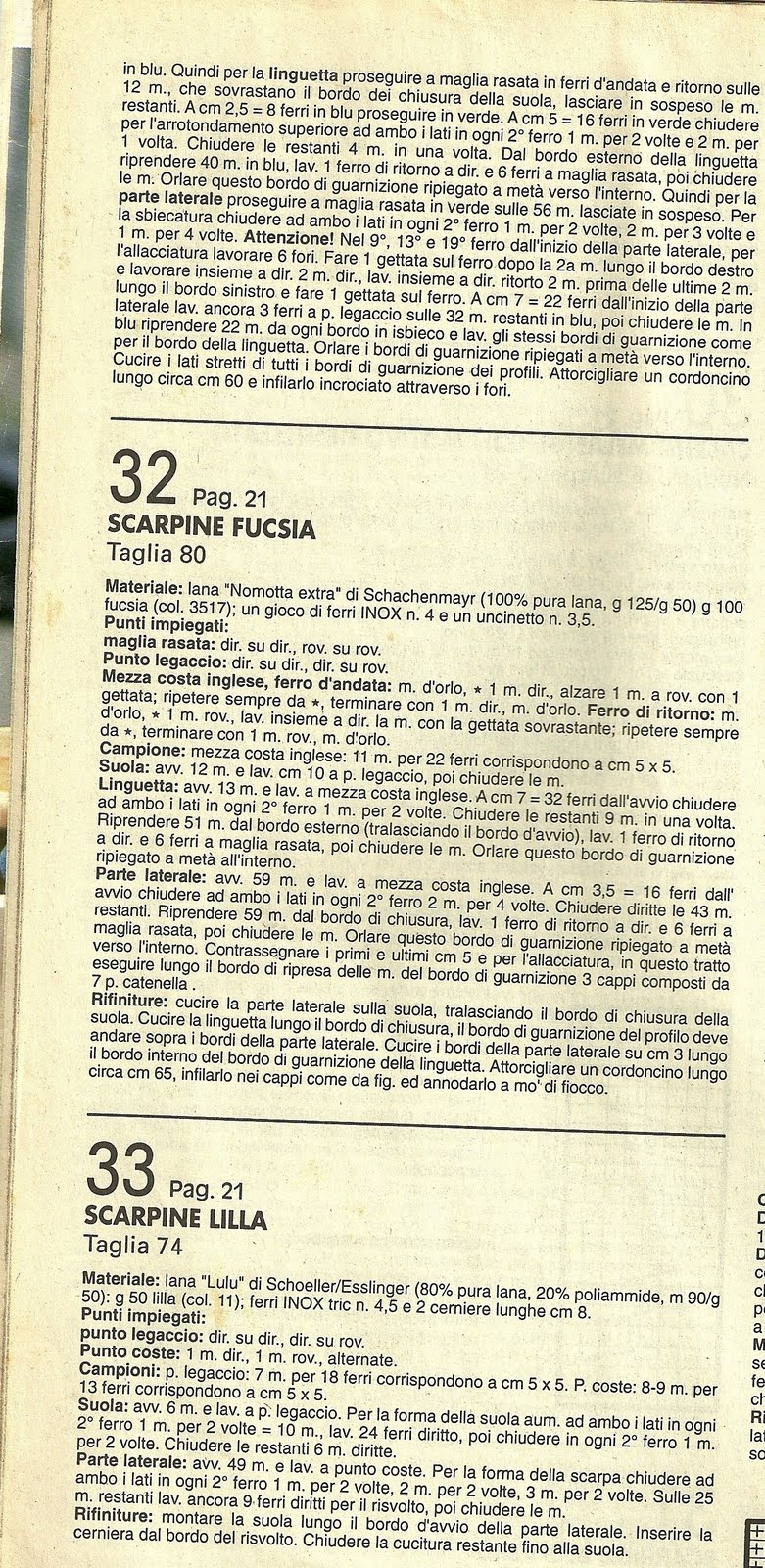 maglie corrispondenti al lato destro. Lavorare in tondo a maglia rasata dritto (tutte le maglie a dritto). In ogni giro lavorare insieme le prime due maglie e le ultime due del ferro per la punta e per il calcagno, fin