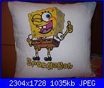 Il cuscino e' davvero bellissimo, quasi quasi, se dici che e' cosi veloce da ricamare, lo faccio anche a Gabriele che adora Spongebob!!