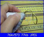 Ora tagliate dal filato che avete scelto un solo filo molto lungo, circa 50-60 centimetri; chi di voi ha utilizzato il filo metallizzato non si troverà molto bene in questa fase, suggerisco di utilizzare un filo normale che assomigli al colore del metallizzato ... dovete fare questo: doppiate il filo per ottenere in fondo un cappio.