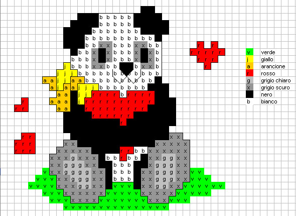 Schemi punto croce modelli animali 5: mucca, orso, panda, paperetta, pesci, pulcini, topo, giraffa, ippopotamo, micio e orso bianco.