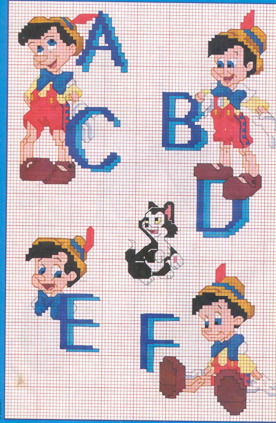Schema punto croce Alfabeto Pinocchio 1