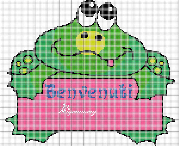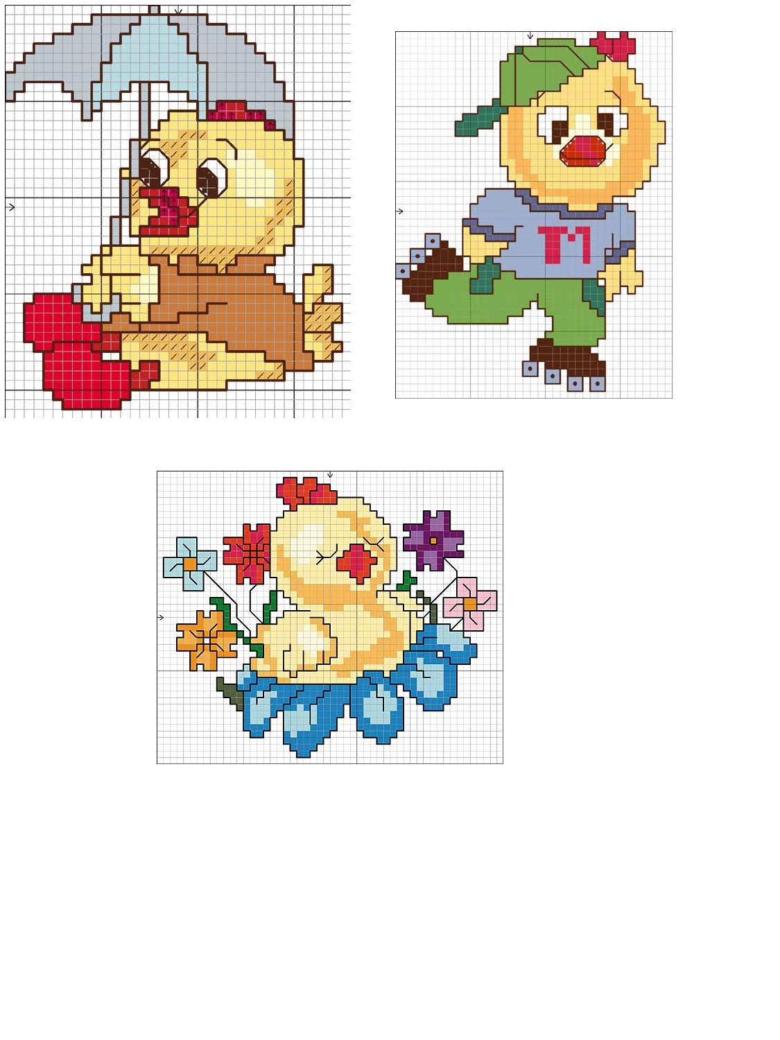 Schemi punto croce inviati dai nostri utenti 173: Pulcini 2, Quadretto, Qui Quo Qua, Rana benvenuti e Rana sono nata.