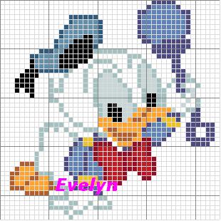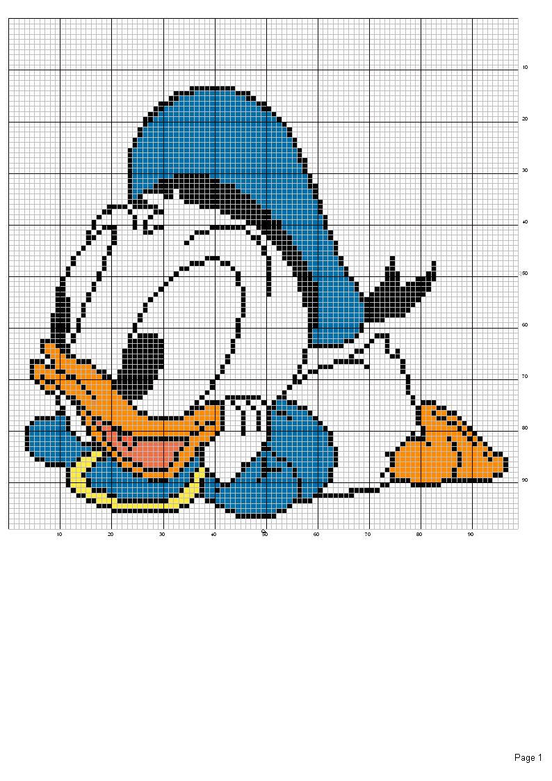 Schemi punto croce inviati dai nostri utenti 187: Pagliaccio, Paperina Elegante, Paperino baby, Paperino bn, Odio il lunedi e Paperino baby 2.