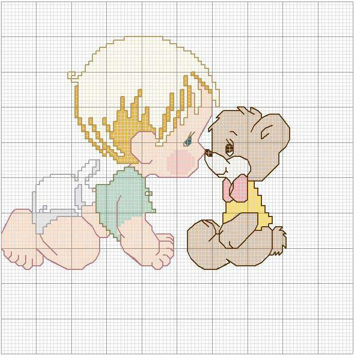 Schemi punto croce inviati dai nostri utenti 199: Bimbo e orsetto, Rosa e boccioli, Notte bimba, Notte bimbo, Bordo fiore 1 e 2.