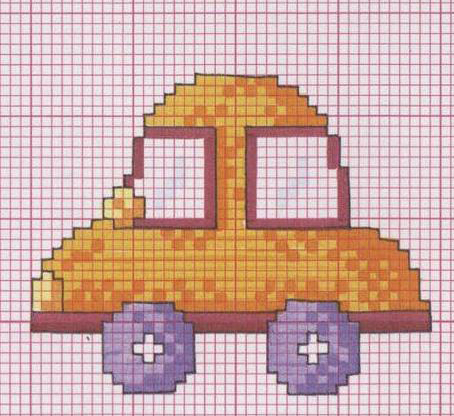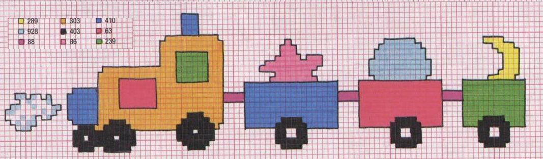 Schemi punto a croce speciale Trasporti 4: Trenino 3, Nave, Aereoplanino, Veliero, Maggiolino ed Auto 2.
