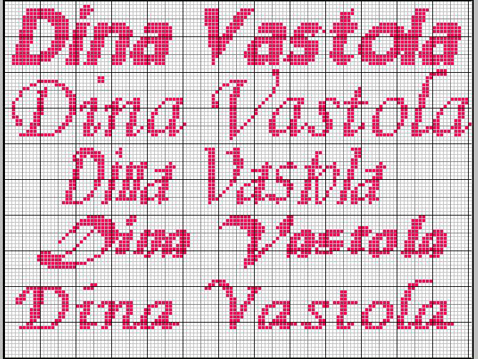 Schemi punto a croce gratuiti di nomi richiesti dai nostri utenti: Dina Vastola, Alessandra R, Mena Annarita, Tonini.