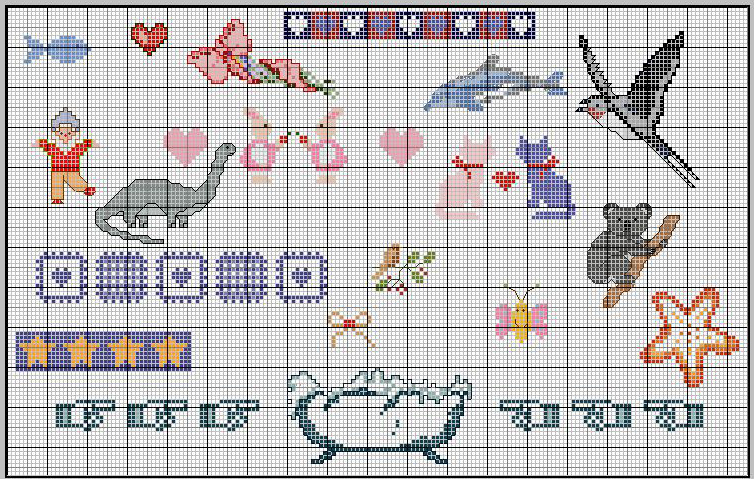 Gli schemini punto croce da ricamare: Simbolini, Floreali, Misto 2 ed Orsetti .