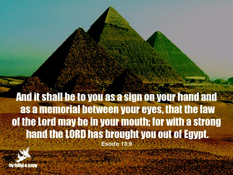 And it shall be to you as a sign on your hand and as a memorial between your eyes, that the law of the Lord may be in your mouth; for with a strong hand the LORD has brought you out of Egypt.